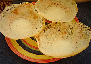 There are various types of Hoppers in Sri Lanka. Plain hoppers, egg hoppers, milk hoppers, honey hoppers and string hoppers.