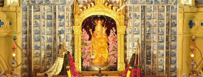A gothic styled basilica stands in Velankanni in memory of apparition. The basilica erected by the Portuguese and Indians stands at the site where the buttermilk seller saw the Mother Mary and Jesus. The iconic depiction of the Madonna is unique in that; it is one of two only icon where mother Mary portrayed wearing Indian saree; while the other statue is said to have been buried with Aurangzeb, the Mughal Emperor The basilica is known as a site for pilgrims from all over India and its assembly of multilingual prayers every Christmas. The church building was raised to the status of Basilica in1962, by Pope John XXIII